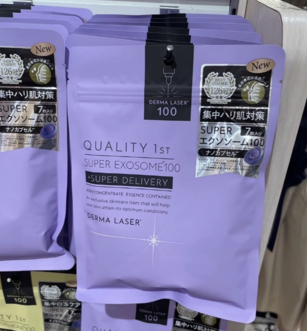 QUALITY 1ST Derma Laser 真皮激光面膜又出新了!!✨🤍 🥹配合適合秋天用既美容成份! 🇯🇵日本限定發售!! 日本QUALITY 1ST面膜最新發售! SUPER EXOSOME 100 超級外泌體100面膜〜✧‧˚ ☀主要功效:減少自由基傷害,並預防肌膚老化和損傷 刺激膠原蛋白和彈性纖維的生成,有助於修復受損的皮膚組織,改善肌膚質地和減少疤痕的出現! 近年韓國超人氣美容成份🥰! 美容院超建議laser後用黎修復皮膚! 🇯🇵日本BEST COSME + 日本毒舌雜誌LDK獲A級評價! 追求到極限的高濃度✕高滲透👏 QUALITY 1ST獨有的進化激光穿透面膜效果 前所未有的穿透力和立竿見影的效果✨ 對皮膚零刺激!!! 關鍵是它只需敷3分鐘左右 急救、懶人必備!!! 配合提高肌膚吸收、滲透能力既納米膠囊 滿滿既美容液浸泡著塊MASK~🩷🎶