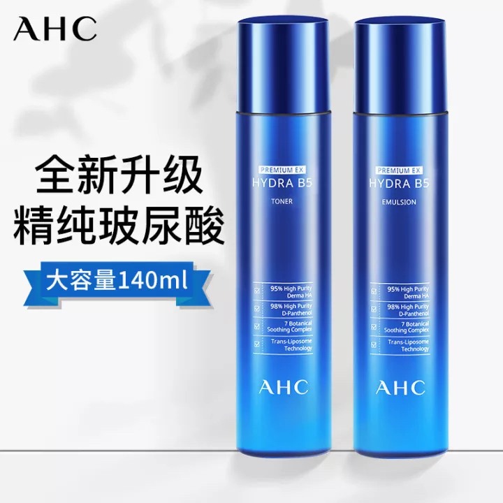 韓國🇰🇷AHC B5玻尿酸保濕系列EX升級版 🅰️ 爽膚水Toner 140ml 🅱️ 乳液Emulsion 140ml A.H.C B5高效水合透明質酸 ❤️高純度透明質酸提高至95% ❤️高純度維他命原B5提高至98% ❤️富含7種穩定肌膚的植物複合物 為乾燥缺水或脫皮的肌膚帶來深層補水的修護功效,舒緩敏感不適 超級大油皮都可以用 補水效果更驚人 ✅95%高純度玻尿酸 ✅98%高純度維生素 B5玻尿酸大家都熟悉了是AHC的明星款,基礎護膚重要的一步——補水,這款富含玻尿酸和維他命的 可以保持皮膚潤澤細嫩光滑 高效保濕補水 提供肌膚所需的營養 還可以舒緩敏感,令肌膚飽滿滑潤 💙 皮膚學專研95%高純度玻尿酸,直達肌底,快速深層補💧,98%高純度維生素🅱️5⃣,可以有效減少水分💦流失,7種複合維生素🍎可以有效修復肌膚,調節水油🐳平衡,保持水潤的同時還可以舒緩肌膚👍